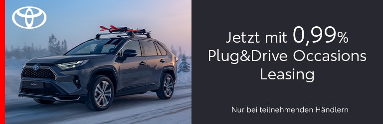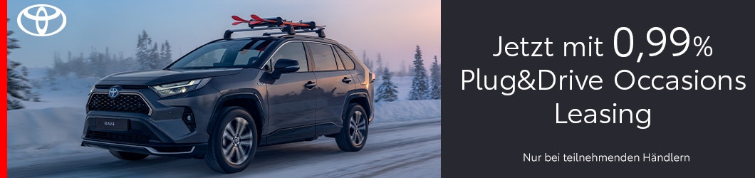 Die Aktion ist auf allen Toyota Elektro und Plug-in Hybrid Occasion Plus Fahrzeugen und bei teilnehmenden Toyota Partnern gültig. Die Anzahlung ist bei Leasingangeboten nicht obligatorisch. Eine Leasingvergabe wird nicht gewährt, falls sie zur Überschuldung führt. Die Verkaufsaktion ist gültig für Vertragsabschlüsse vom 1. November bis 31. Dezember 2025 oder bis auf Widerruf. Nur gültig für Occasion Plus Fahrzeuge im Toyota Fahrzeugmarkt.